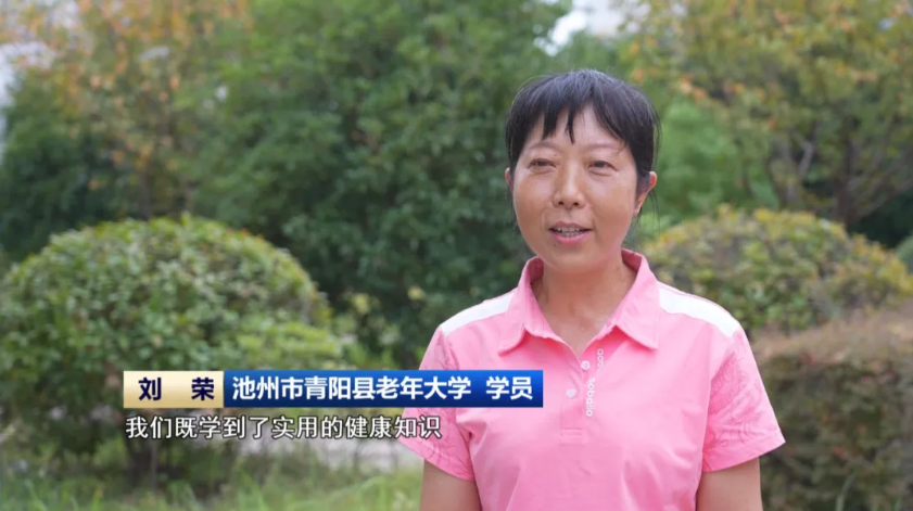 池州市青阳县老年大学 学员 刘荣:既学到了实用的健康知识,还交到了一帮志同道合的好朋友。以前是我们“凑合”课,现在是课来“凑合”我们。这是真正为我们考虑的老年大学。我现在每天都要来上学,孩子们都说我越来越年轻了。