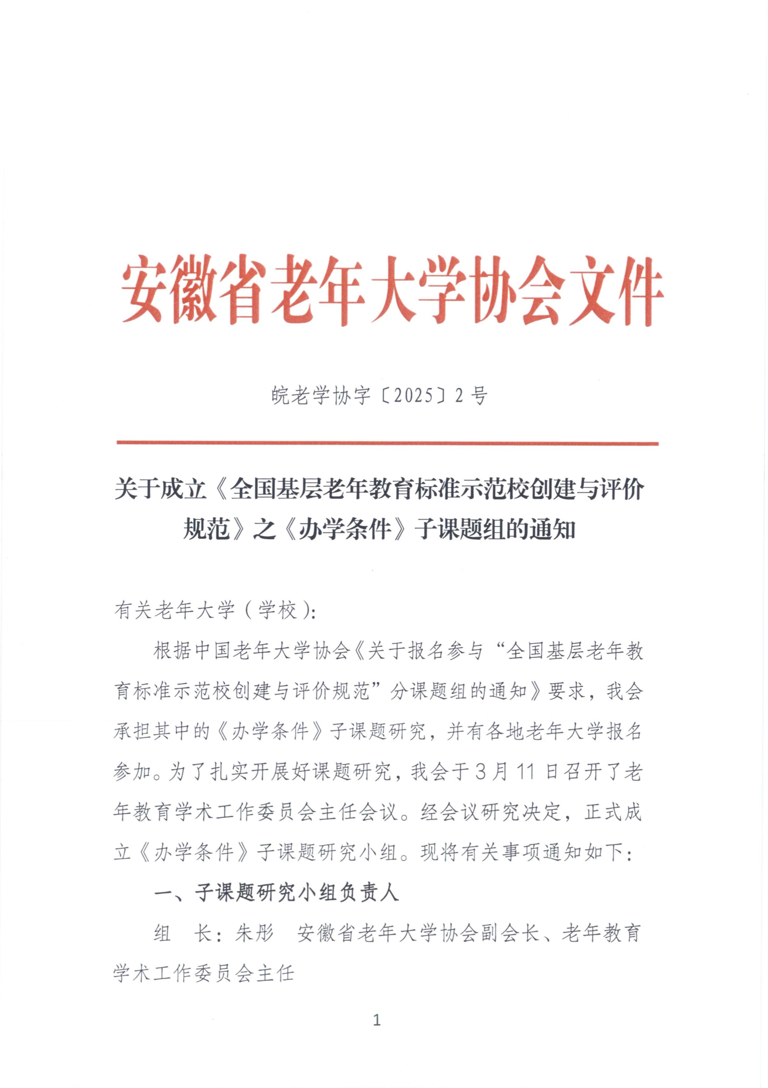 2号文 关于成立《全国基层老年教育标准示范校创建与评价规范》之《办学条件》子课题组的通知.pdf
