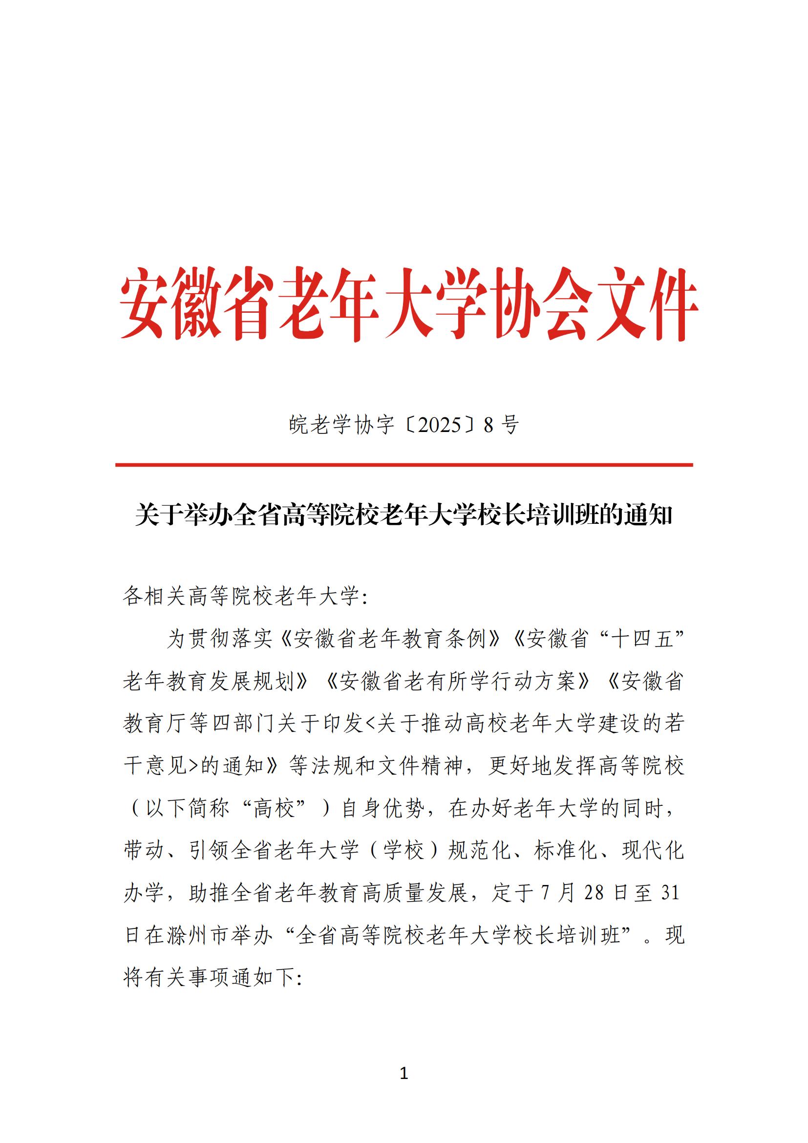 关于举办全省高等院校老年大学校长培训班的通知