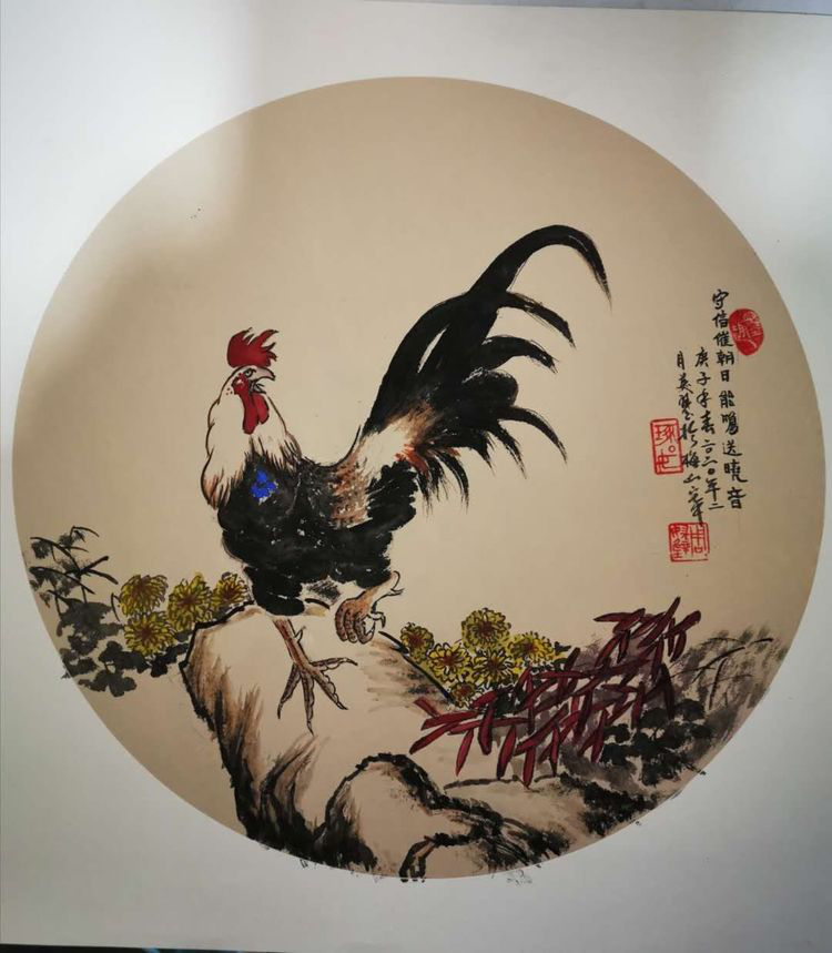 国画:雄鸡报晓
