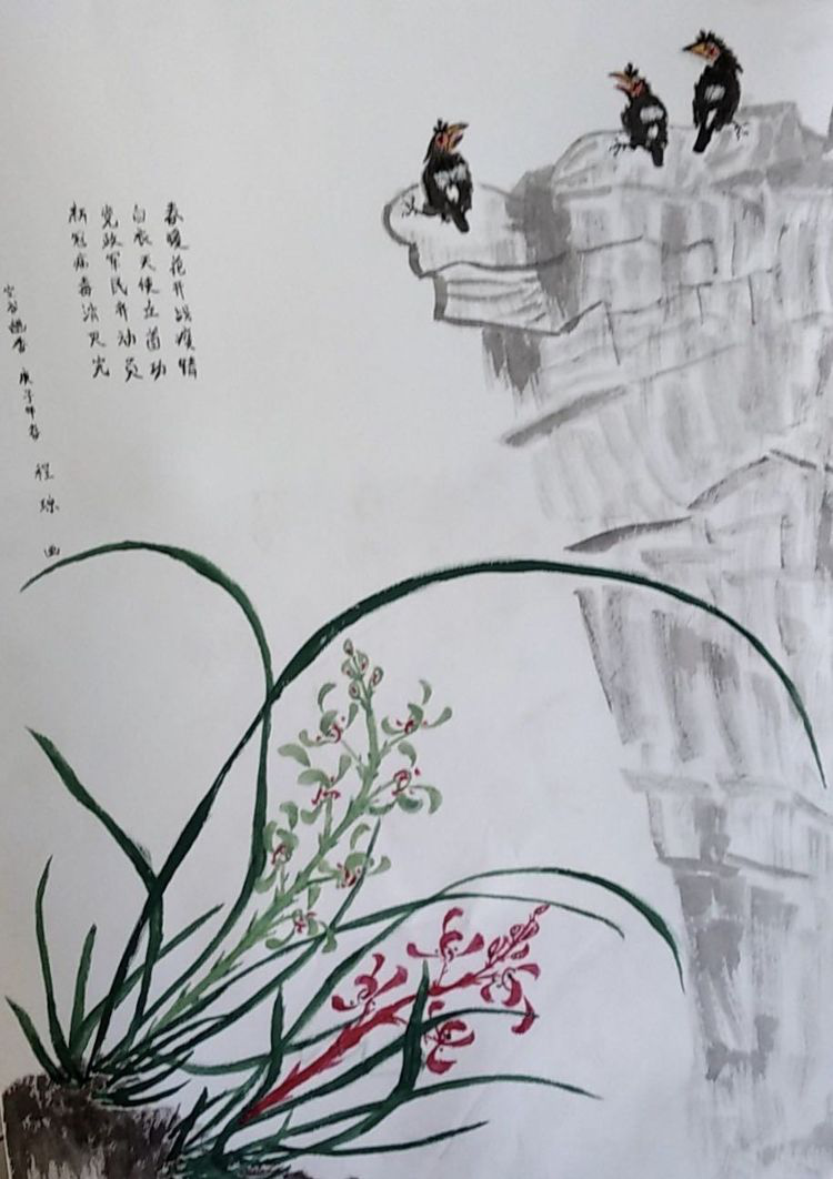 国画:双兰八哥图