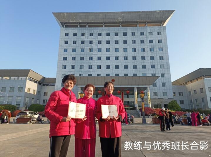 勤学苦练善悟,为学员做好标杆。唐爱珍、张孝萍深知,一班之长即是学员们的主心骨,也是学员们的榜样,如果自己打不好太极拳,是没法影响和带动学员。于是,她们在学拳路上一路狂奔,一心扑在太极拳的学习、演练上。看资料,看视频,一遍又一遍,直到看懂模透;架腿、压腿、猫步、马步、仆步下势……每天坚持晨练。功夫不负有心人,太极拳、太极扇、太极剑等十几种太极运动,都被她俩演练成了精品。